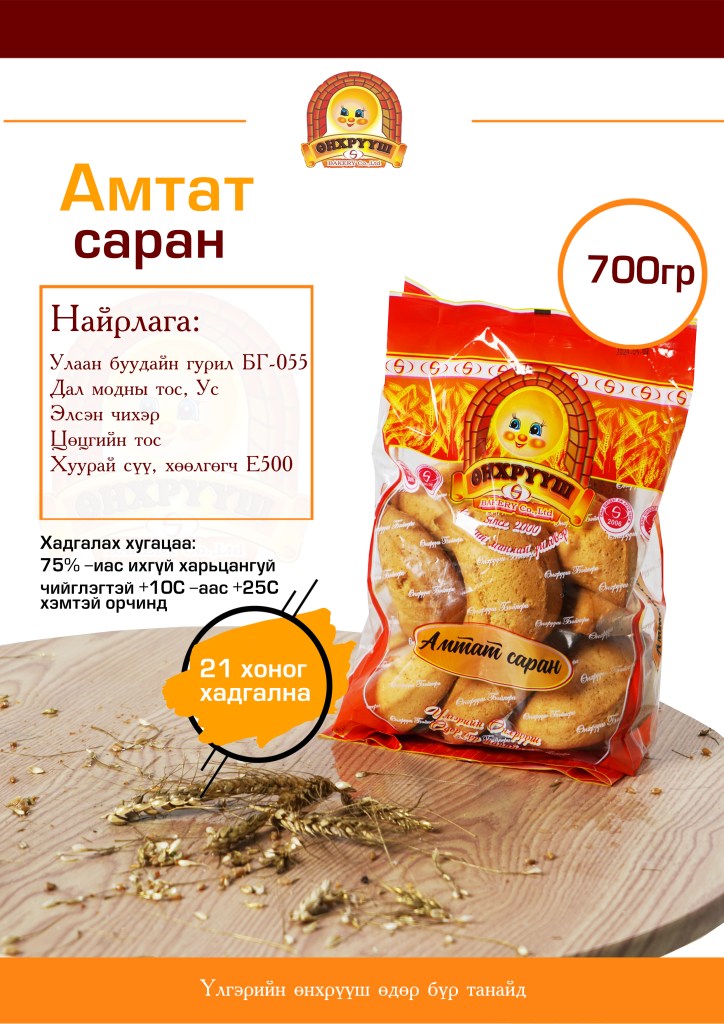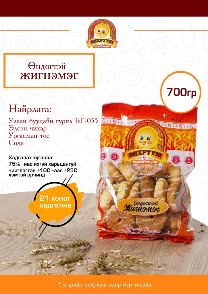 “Мөнхийн Гэрэл Өнхрүүш Бейкери” ХХК нь 2000 онд байгуулагдаж талх нарийн боов, үйлдвэрлэл үйлчилгээ чиглэлээр үйл ажиллагаагаа эрхэлж хотын өдгөө 24 жил үйл ажиллагаагаа явуулж байна. Манай компани нь салбартаа тодорхой байр суурь эзэлcэн, Монгол улсдаа талх, нарийн боовны чиглэлээр үйл ажиллагаа явуулж буй ууган компаниудын нэг юм. Манай компани нь Байгуулагдсан цагаасаа хойш чанартай бүтээгдэхүүн, үйлчилгээг зах зээлд нэвтрэн, нийлүүлж үйлчлүүлэгчдийнхээ сэтгэл ханамжийг өндөр байлгахыг зорилгоо болгон ажиллаж байна.
